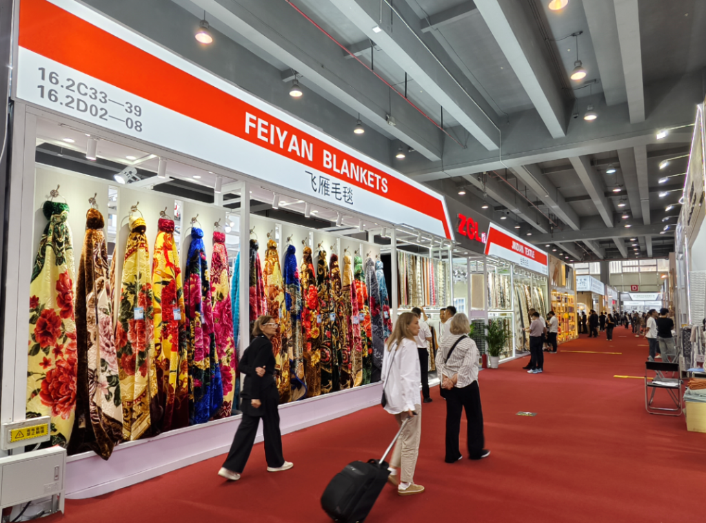 在飛雁毛毯的展位上,百余條毛毯有序陳列,吸引大批新老客戶,中東、非洲等地的尤為眾多。為在廣交會嶄露頭角,飛雁毛毯公司提前半年籌備,在花型設計與樣品制作上用心投入。在保留原產品優勢基礎上,探索新技術與工藝,開發3D印花壓花毯、泡泡剖花毯等新產品,豐富種類且提升質量。5天時間里,銷售人員熱情飽滿、專業真誠,積極接待客戶,介紹產品、確認訂單,贏得客戶認可與信任。