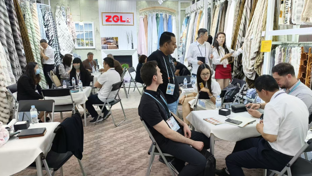 鷹游新立成紡織展位以全系列精品毛絨生產基地為主題,全方位展示兔毛、法蘭絨、舒棉條提花、短絨等產品,充分展現創新理念與實際應用的結合,吸引了眾多客戶的目光。整個展會期間,新立成的展位前始終人潮涌動、熱鬧非凡,客戶詳細詢問產品的特性、價格與合作細節,銷售人員專業熱情地為每一位訪客答疑解惑,現場訂單與合作意向紛至沓來,為企業的市場拓展與業務增長注入了強勁動力。